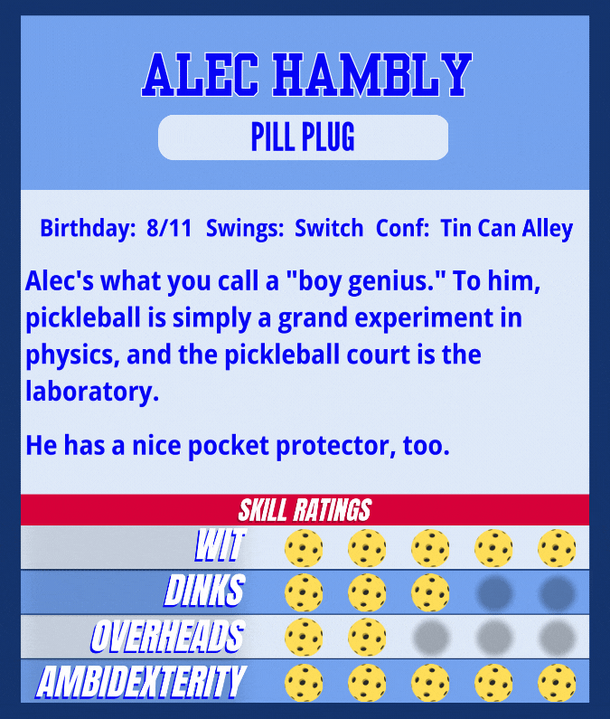 28 | Week 6 | MON 8:00PM | 2/10/2025 | Alec H. | Parker H. | Jared K. | Evan B. | L | 6 | 11 | 0.353 | 2.44 | 2.26 | 0.635 | 0 | 0 |