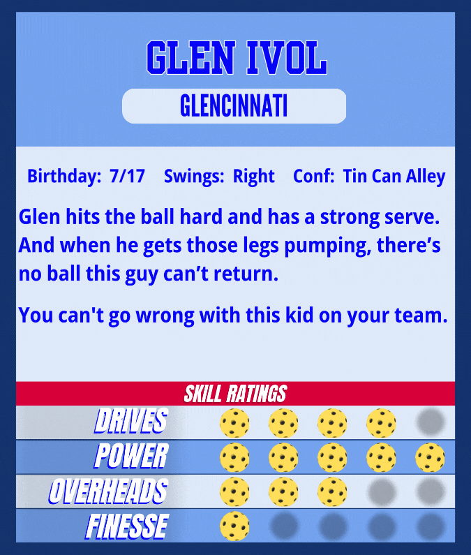 35 | Week 9 | SAT 11:30AM | 3/1/2025 | Glen I. | Jansen L. | Seth T. | Evan B. | W | 11 | 8 | 0.579 | 2.46 | 2.17 | 0.707 | 0 | 1 |